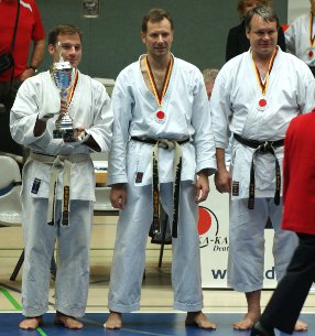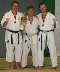 in Bottrop ausgetragen wird, war das Karate-Centrum Shotokan mit 4 Kämpfern angereist: Im Kumite Team dieser Alterstufe sicherte sich die Darmstädter Kampfgemeinschaft unangefochten Platz eins. Unterstützt wurden Markus Bill von Stephan Lawnik aus Köln und Thilo Weinzierl aus München. Im Jiyu-Ippon Kumite Ü38 J., sowie Jiyu Kumite Einzel Ü38 J. erkämpfte sich Markus jeweils Bronze.